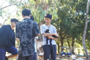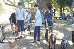 生徒たちは、コミュニケーションもとれるようになり(まだリアクションは遠慮気味でした)、ヤギの餌やりなど、積極的に手伝っていました。