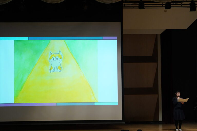 日本の昔話を英語で発表しました。抑揚やスライドで場面を分かりやすく伝えました。