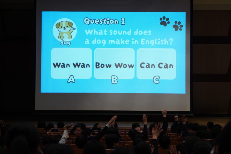 審査結果が出るまでの間は、司会役の生徒が英語にまつわるクイズ企画を進行し、軽快なトークで場を盛り上げました。