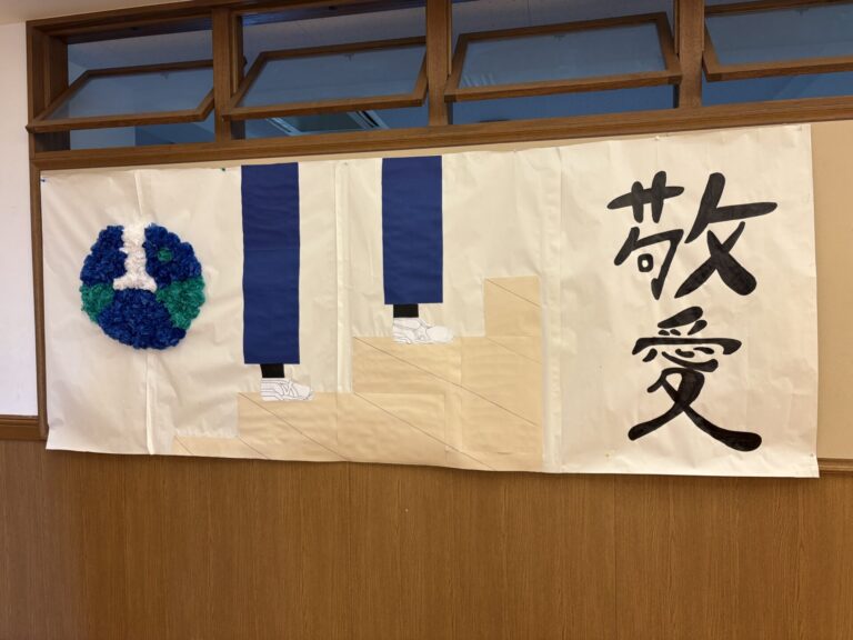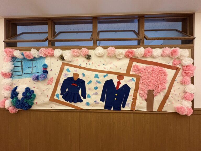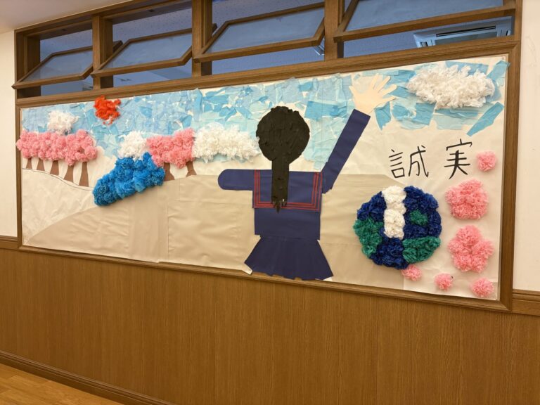 また、中学1年生の廊下には新中学2年生全員で作った廊下の装飾があります。