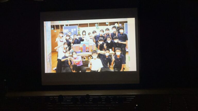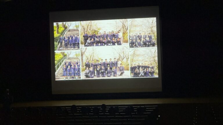 学年の教員からの挨拶の後、保護者の方へのサプライズとしてバイオリンの合奏が披露されました。その後、さらに生徒から学年の先生方へのサプライズとして、手書きの色紙が贈られ、教員からも生徒、保護者の方へのサプライズとして、これまで3年間の活動の記録をまとめた動画を鑑賞しました。