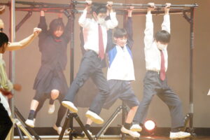 ブレイクダンスも織り込まれたパワフルな演技に魅せられ、生徒も興奮を隠しきれない様子でした。