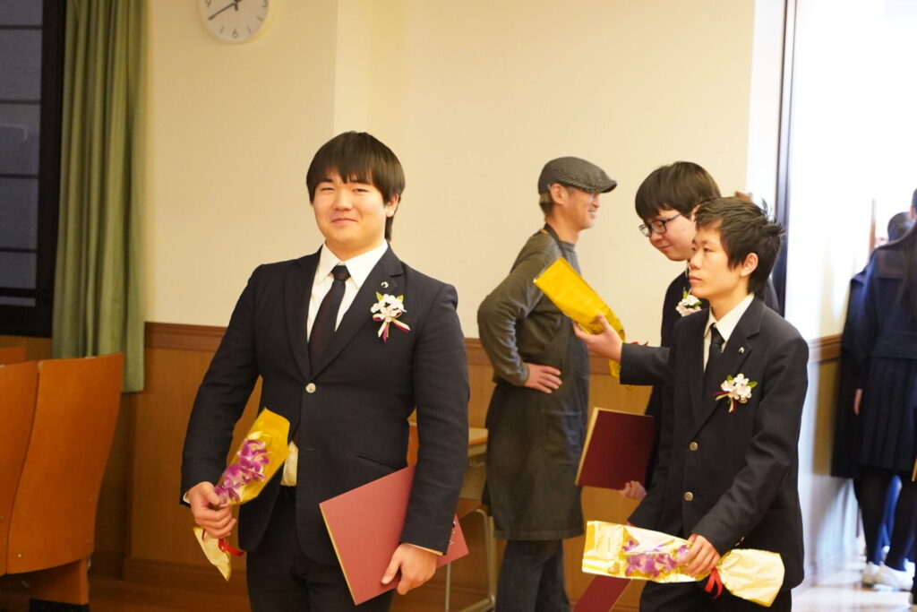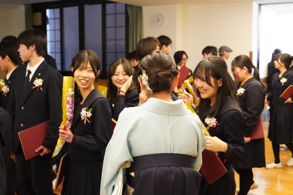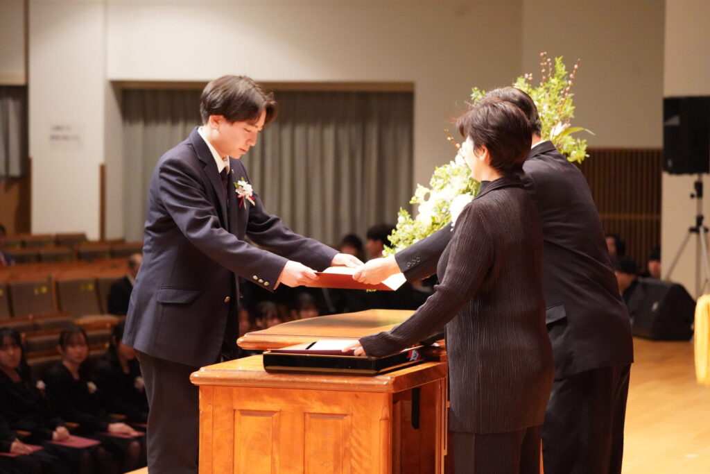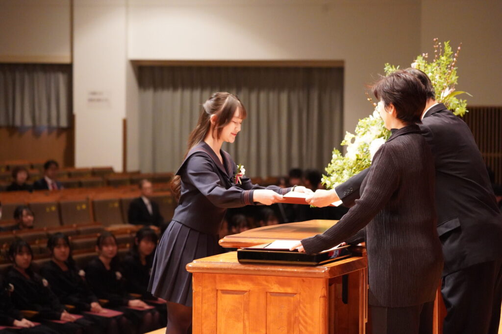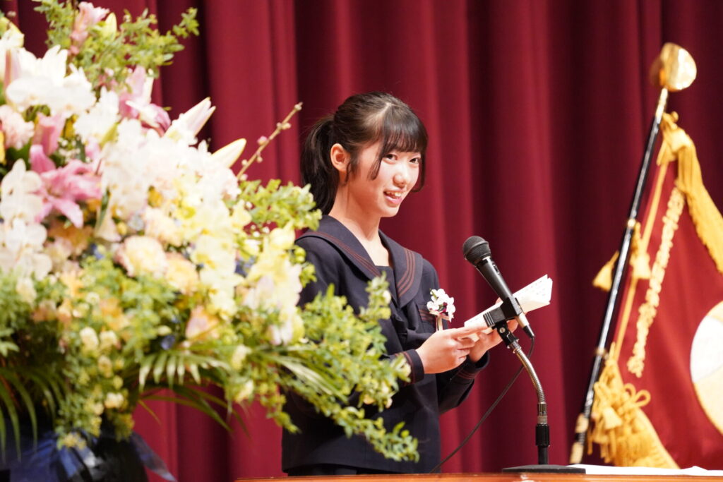 式典では理事長から卒業証書が手渡され、同窓会会長、PTA会長から祝辞が贈られました。卒業生代表は答辞の中で、これまでの学校生活への想い、在校生への激励、教職員や保護者の方への感謝の気持ちを述べました。