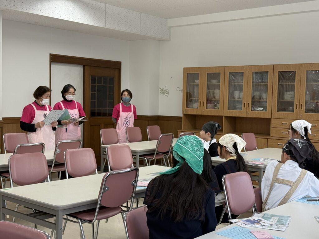 12月12日(金)旭区の食生活等改善推進員(ヘルスメイト)にお越しいただき、食育講座を実施しました。外部の講師をお招きして講義をしていただくことは初の試みです。