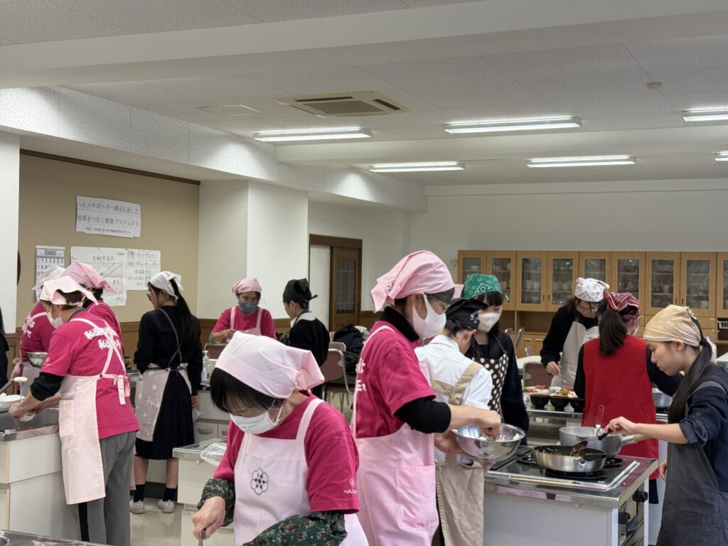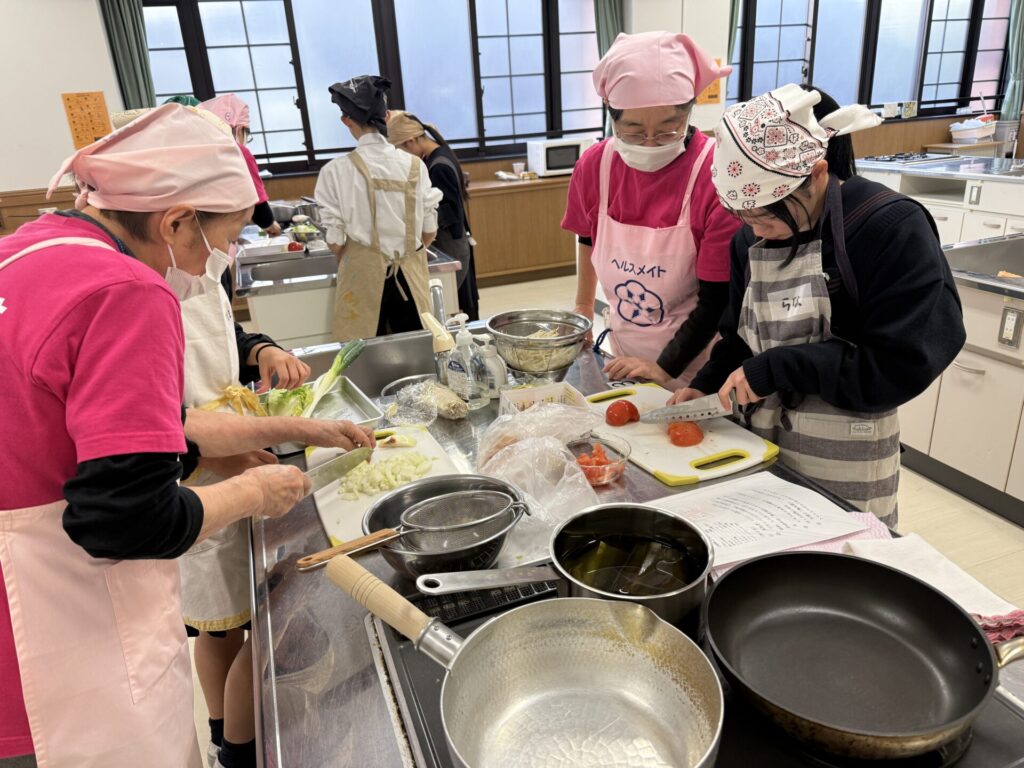 ヘルスメイトのみなさんにサポートに入っていただき、グループに分かれて調理実習を行いました。