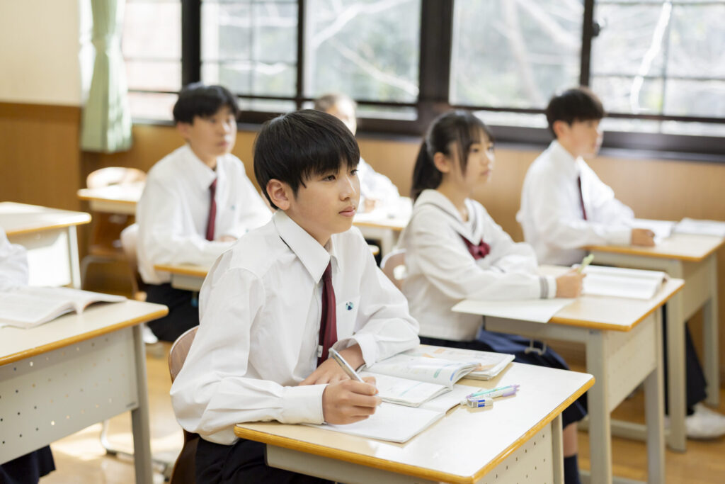 授業の3分前には校内にカノンが流れます。カノンが鳴ったら着席をし、次の授業に備えます。